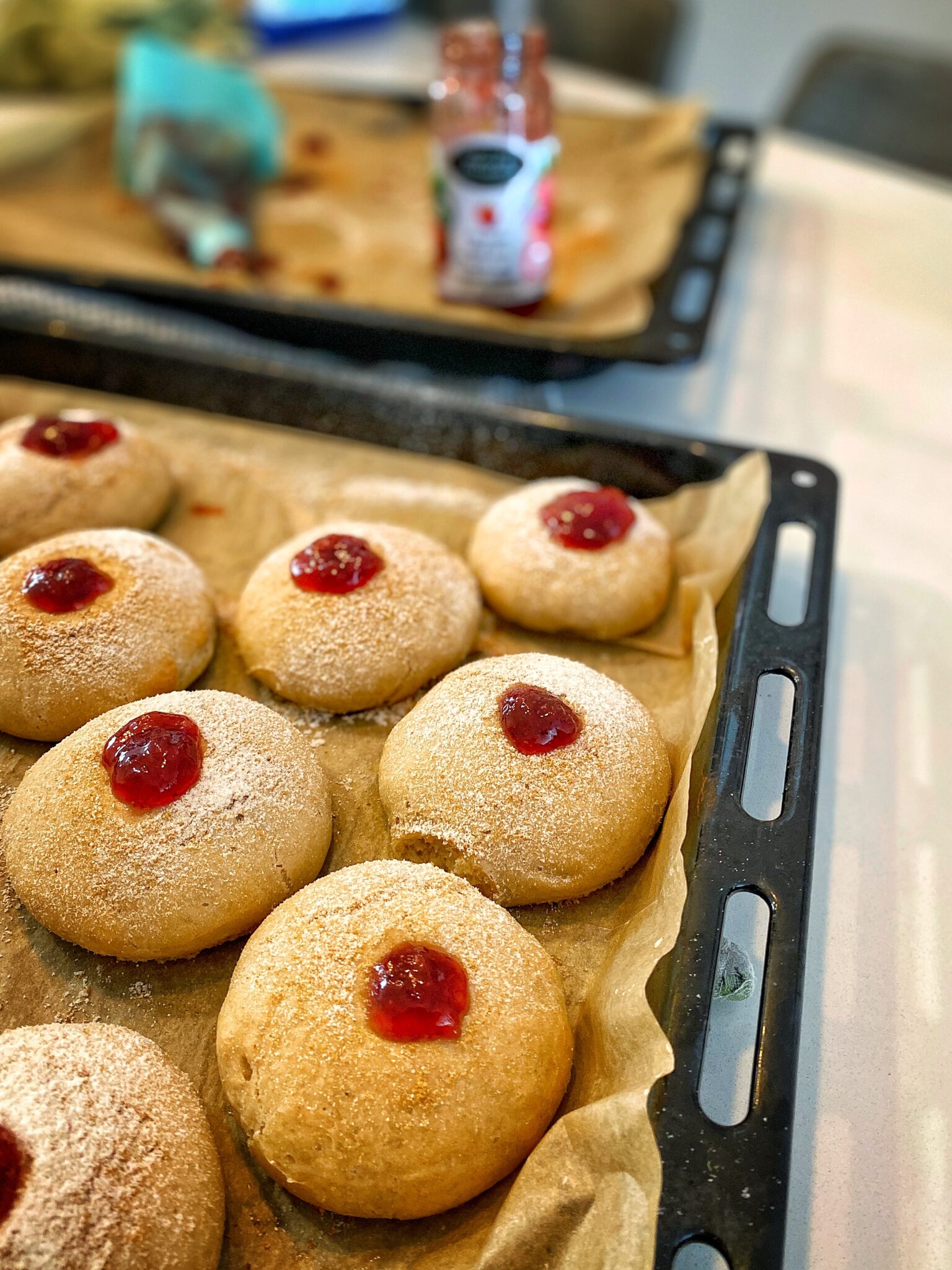 בכל חנוכה הבנות מבקשות להכין סופגניות בבית אז אני זורמת איתן על הגרסה היותר אנושית- סופגניות אפויות